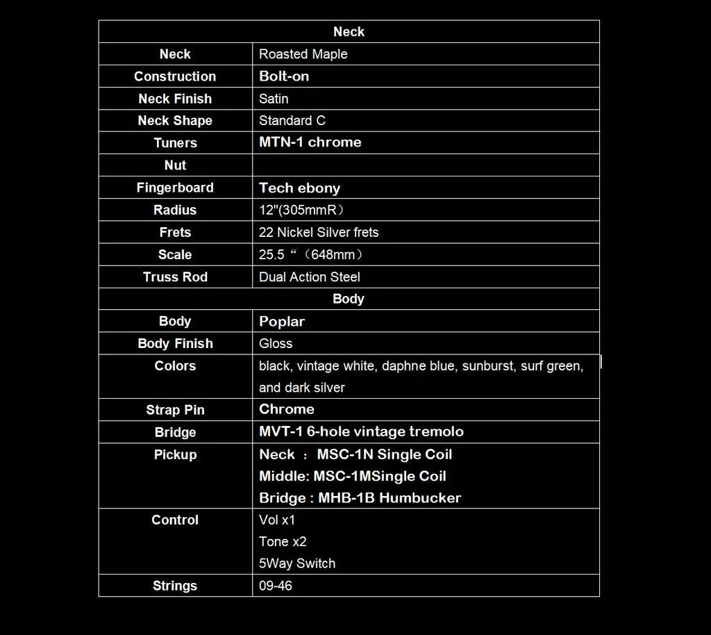 Built with a poplar body and a roasted maple neck with a smooth satin finish, the MSC10 Pro offers impressive stability and tone. Its tech ebony fingerboard, C-shaped neck, and 22 nickel silver frets provide a comfortable, consistent playing experience.