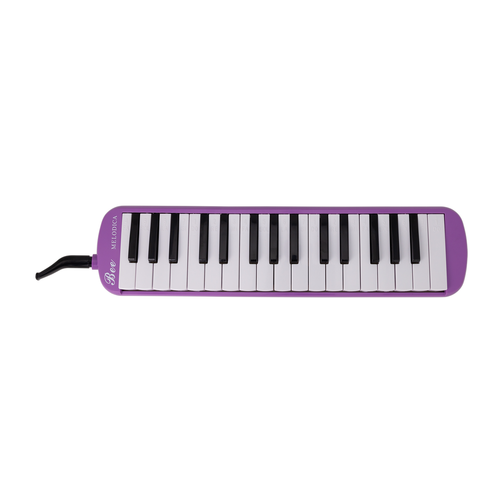 East Top 32 keys melodica, each key with the note on it, easy for students or beginners to play and learn.  With a short mouthpiece and one white soft tube, you can hold the melodica with one hand (hold your hand under the strap) or put the melodica on the table and use the white soft tube for blowing.